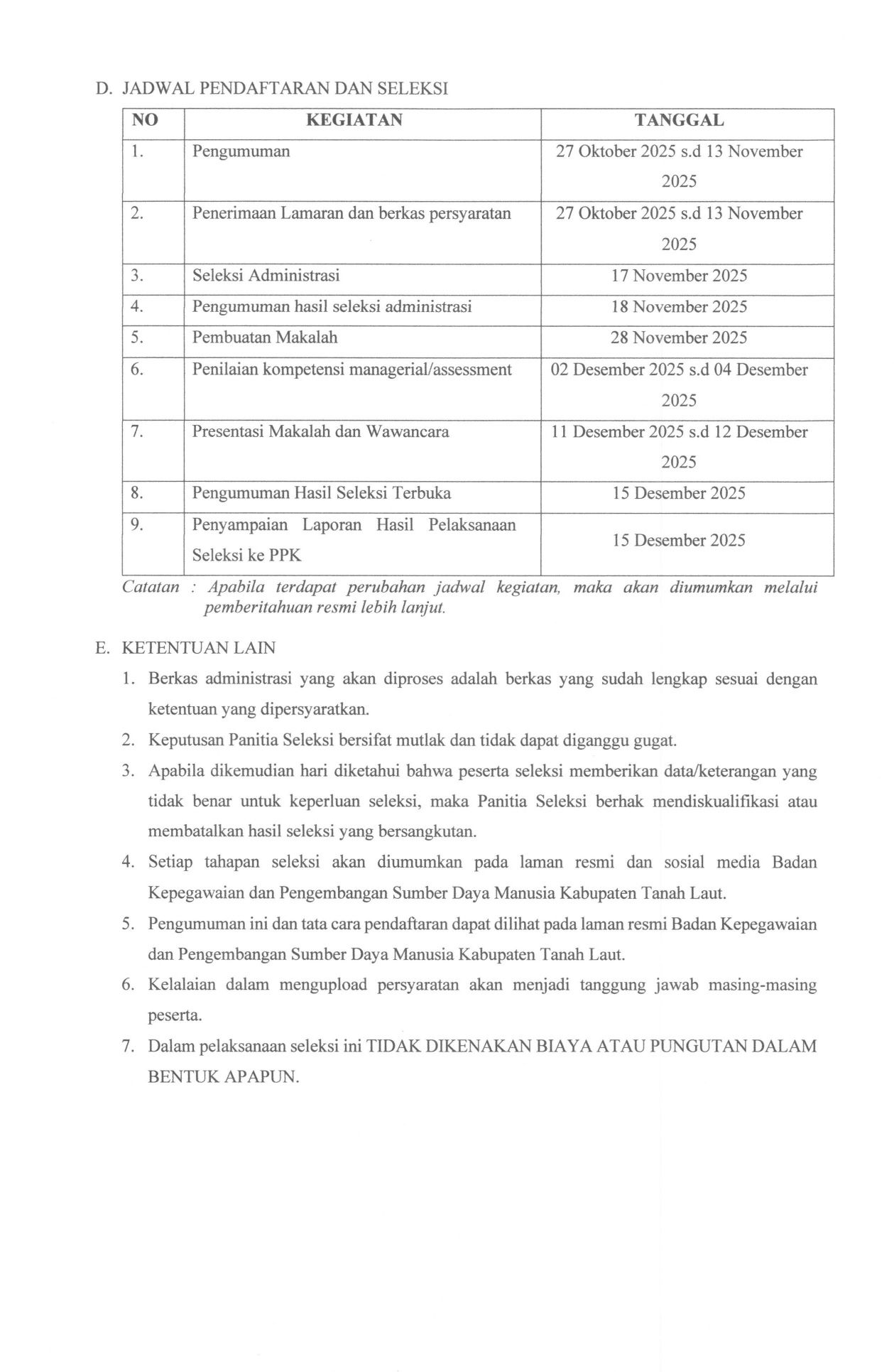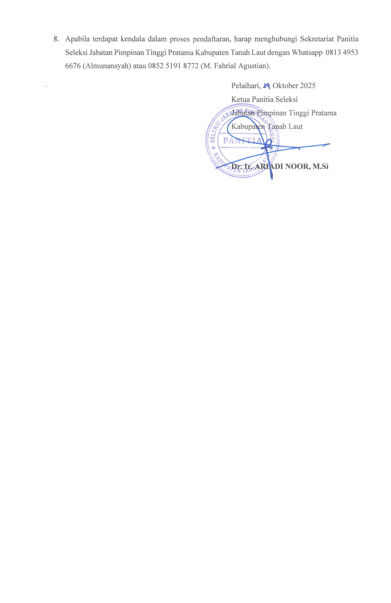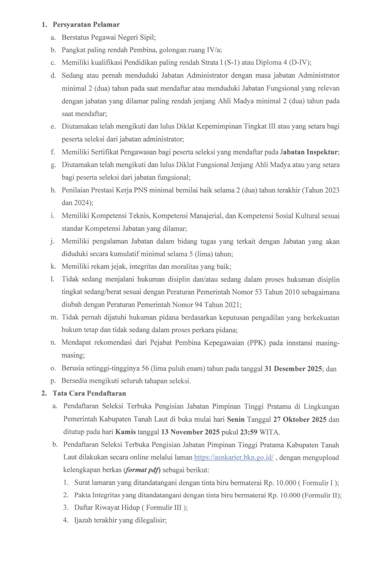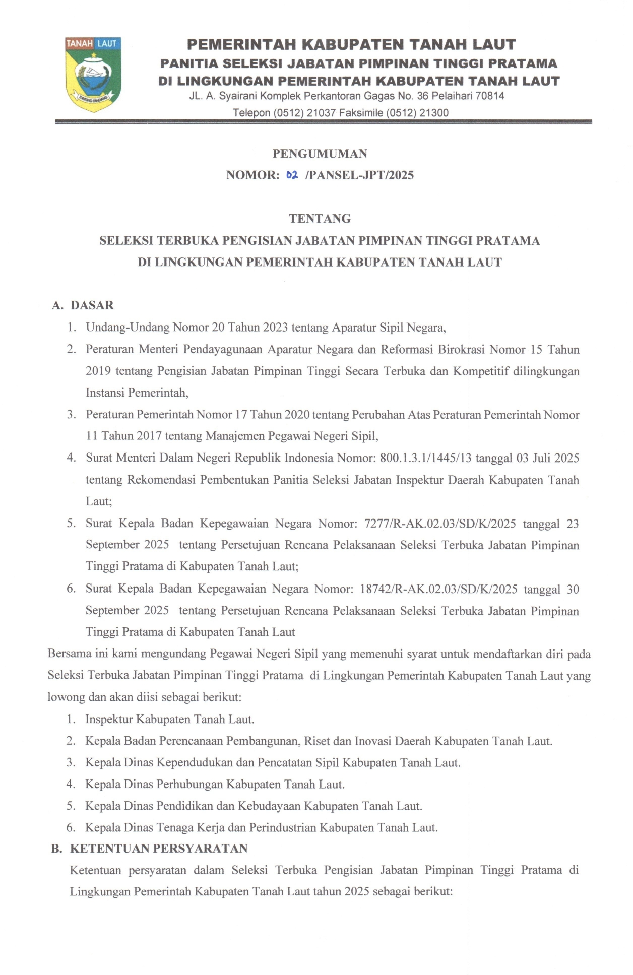 SELEKSI TERBUKA PENGISIAN JABATAN PIMPINAN TINGGI PRATАМА DI LINGKUNGAN PEMERINTAH KABUPATEN TANAH LAUT TAHUN 2025