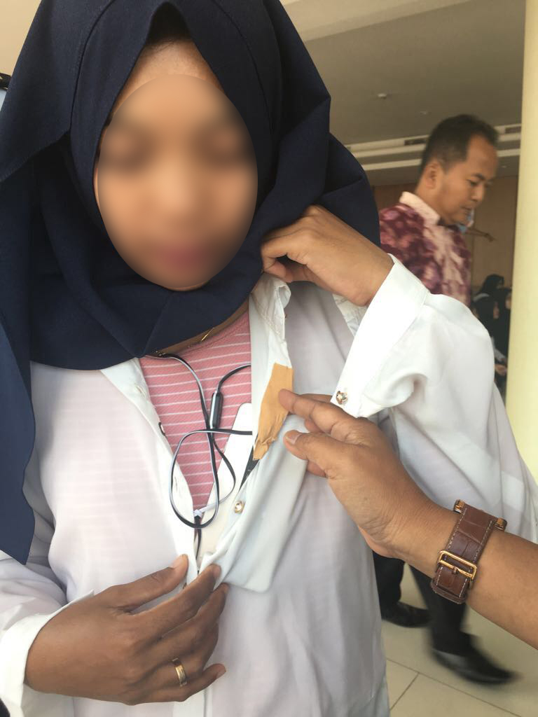 Semarang-Humas BKN, Di sela-sela proses body check menuju ruang Computer Assisted Test (CAT) pelaksanaan sesi ke-4 Seleksi Kompetensi Dasar (SKD) CAT Rekrutmen tahun 2017 CPNS Kemenkum dan HAM di MG Setos Hotel, Semarang, Rabu (13/9/2017), seorang peserta didapati menyembunyikan seperangkat alat komunikasi dengan rapi di balik pakaiannya. Dengan niat untuk curang demi lulus SKD menggunakan CAT BKN, ia nekad bekerjasama dengan joki melalui alat komunikasi tersebut.